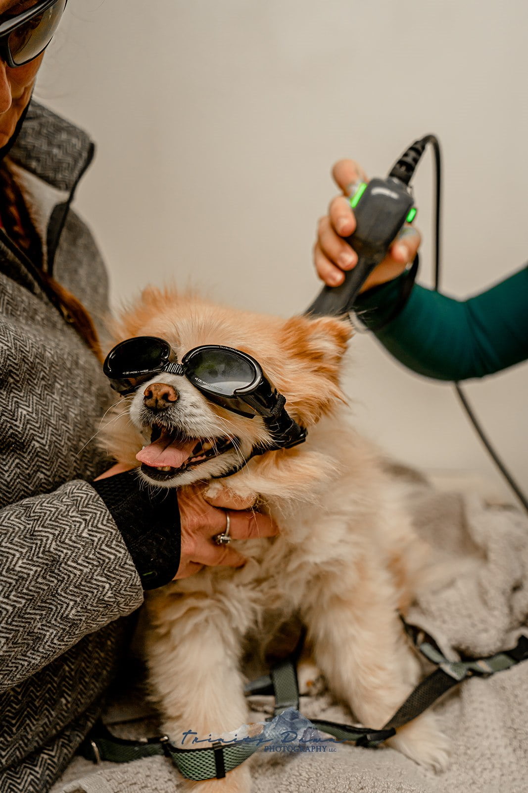 The number of sessions that a pet needs will vary depending on the condition being treated. For chronic conditions like arthritis, we may recommend that you bring your pet in once every few weeks as their joints begin to stiffen or as they appear sore. Since arthritis cannot be “cured,” laser therapy sessions may be an ongoing treatment for the remainder of your pet’s life. For wound care, we might recommend that you bring your pet in every other day for the first few sessions. Once a wound or incision site has closed, the laser sessions will no longer need to be continued.